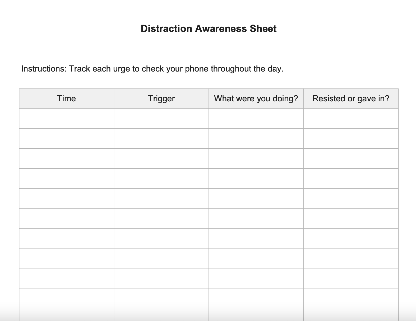 - Behavioral Triggers Audit — identify when and why you reach for your phone.